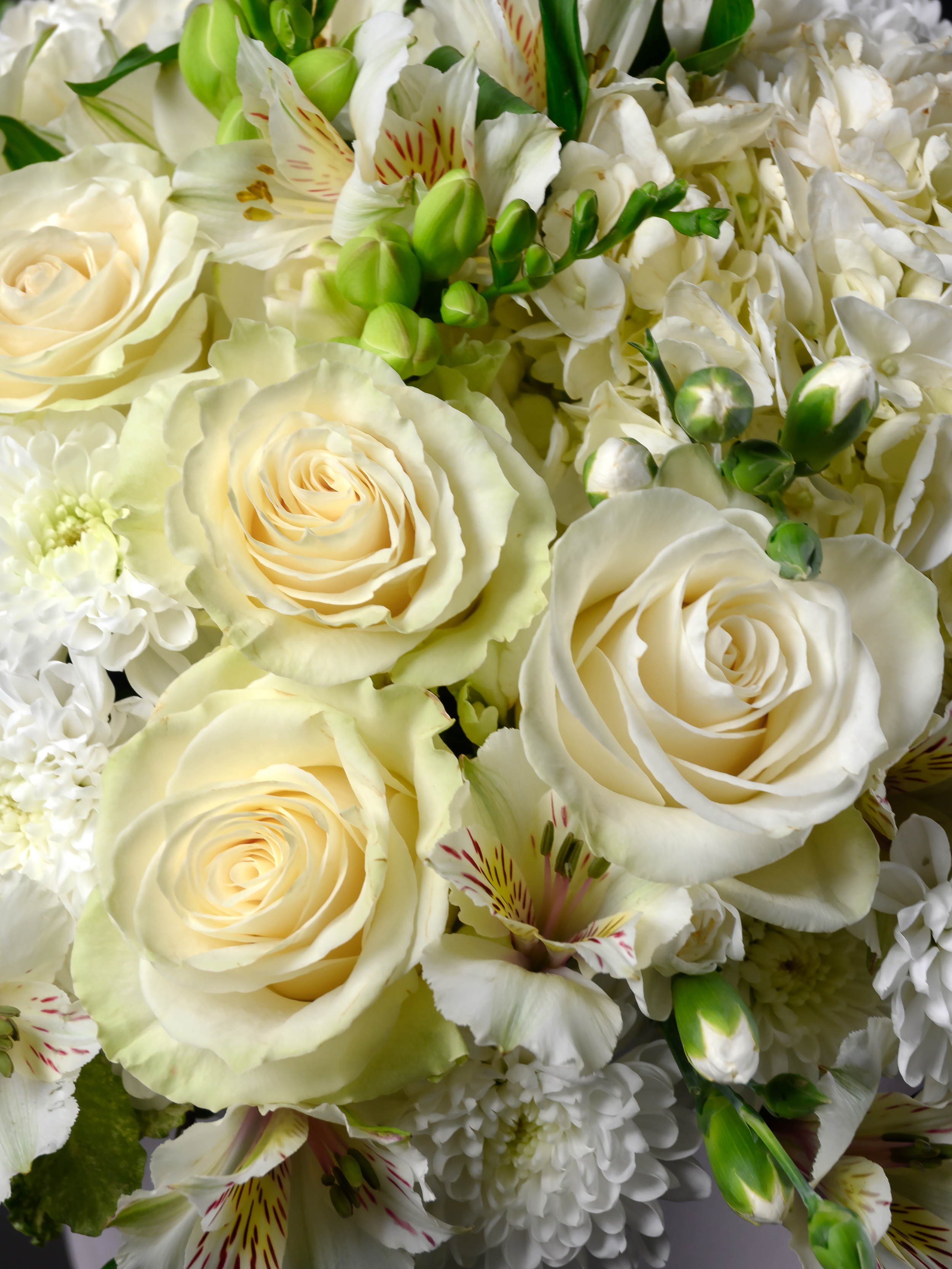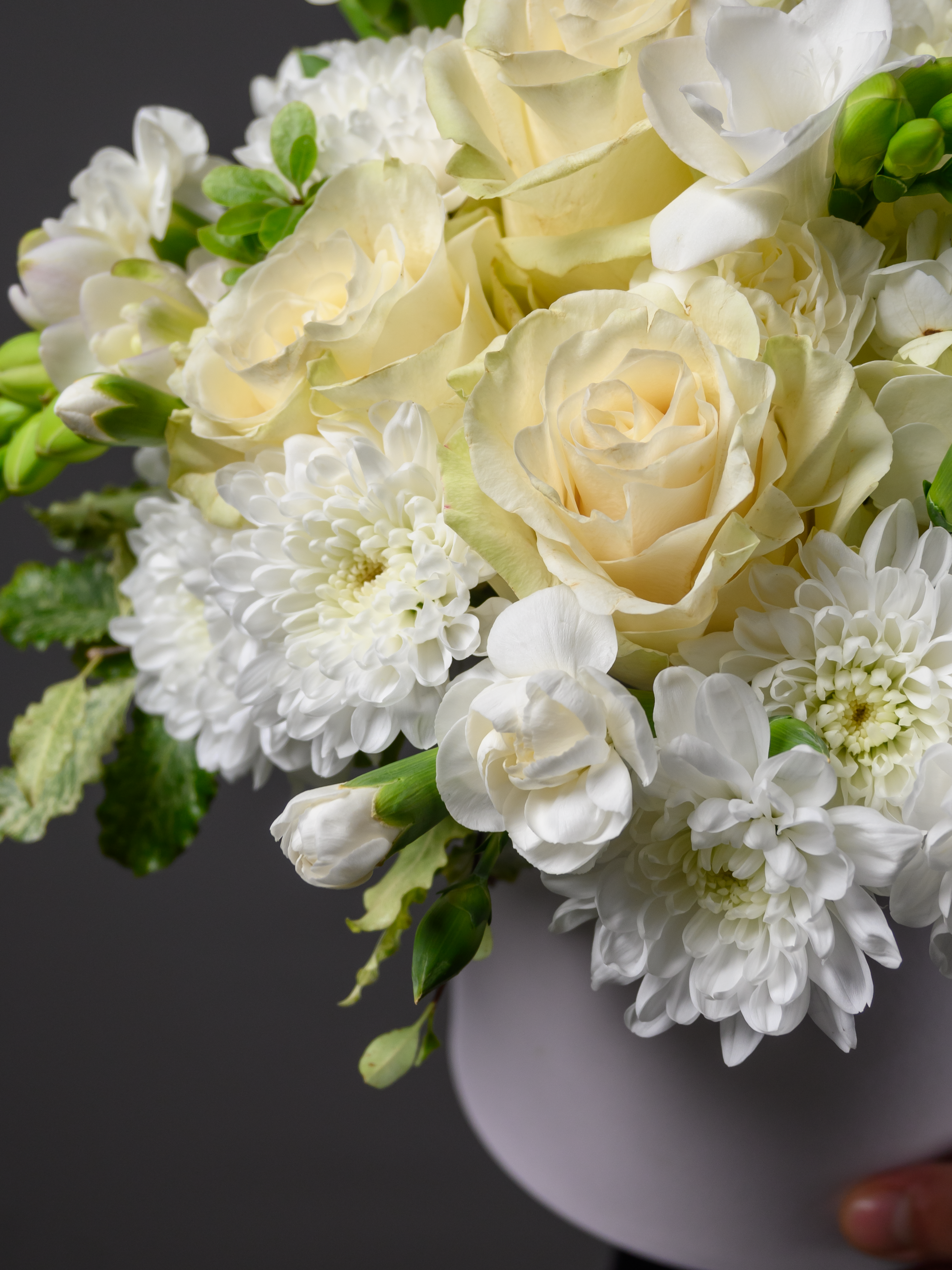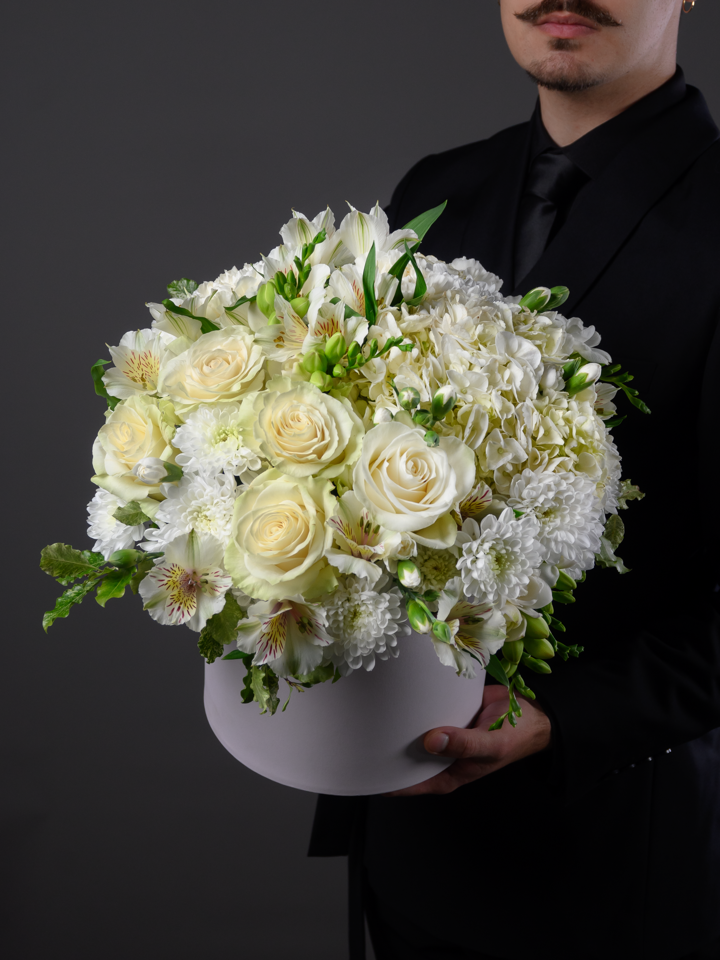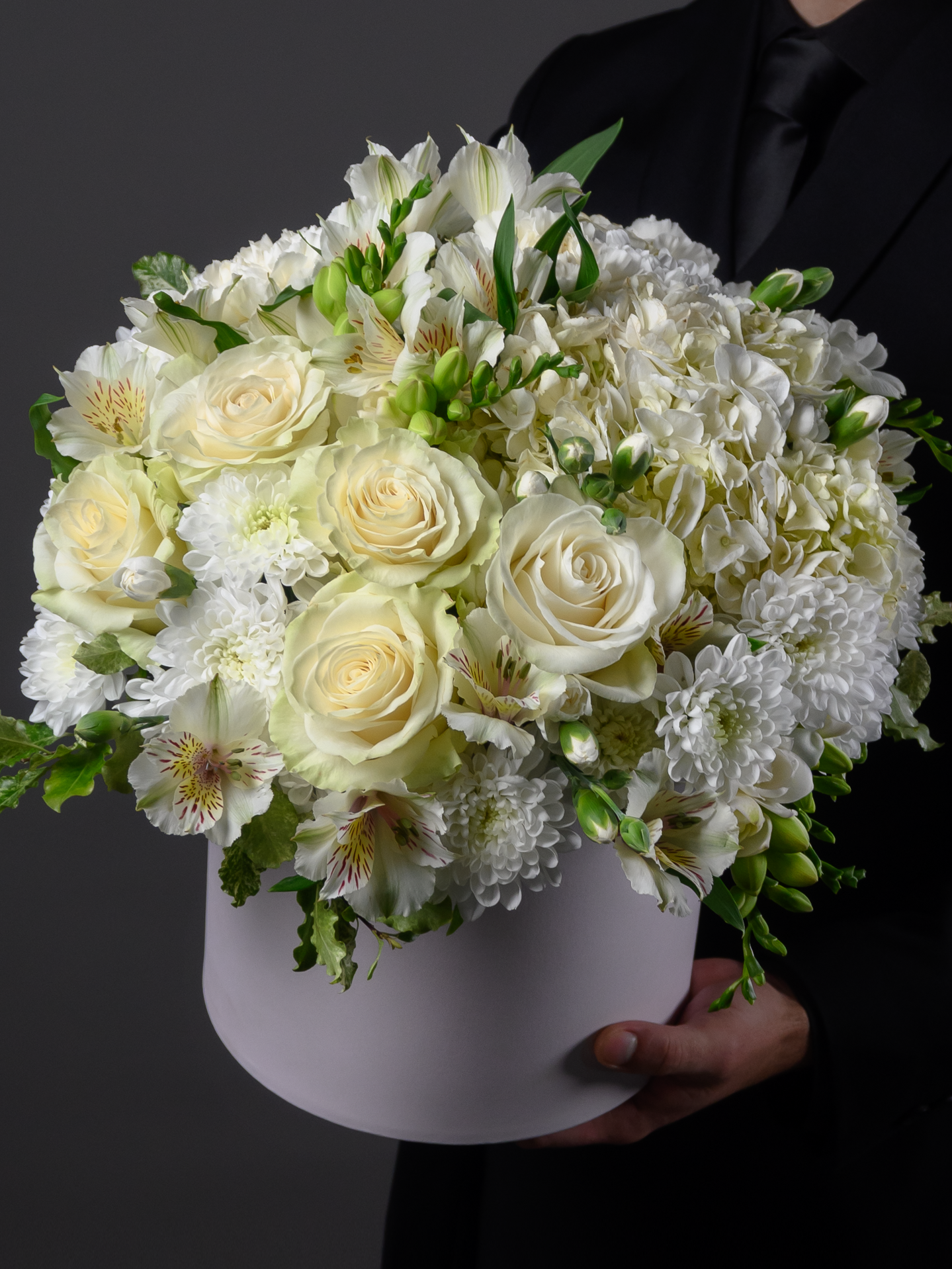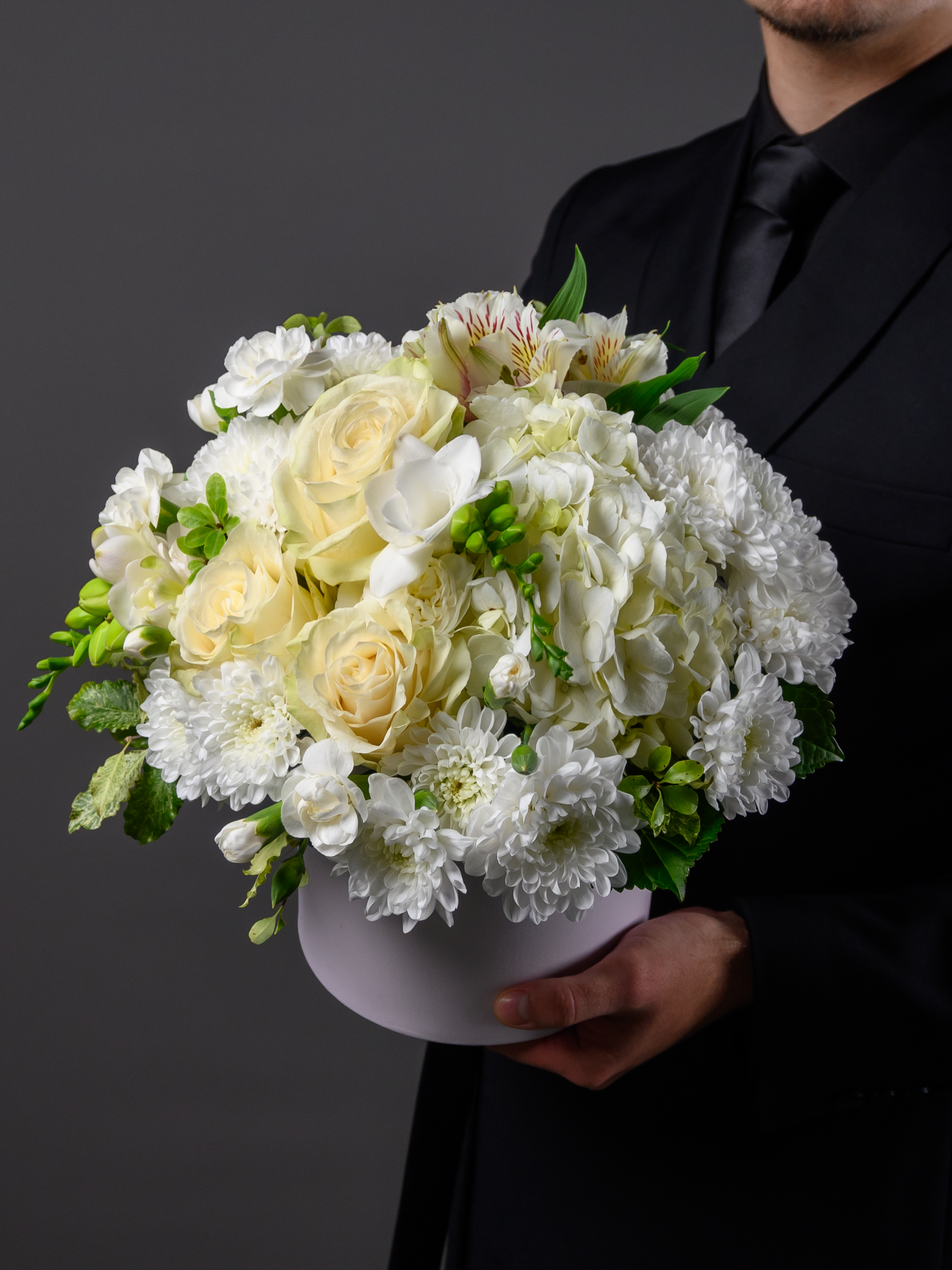 Букет «ПЧистые эмоции» — искренний жест любви и благодарности! Элегантная композиция из гортензии, гвоздики кустовой, фрезии, альстромерии, розы одноголовой микса, хризантемы кустовой белой и питоспорума подчеркнёт вашу заботу. Три размера (M – 20-25 см, L – 25-30 см, XL – 30-35 см) позволят выбрать идеальный вариант. Подарите близкой женщине эмоции радости и тепла уже сегодня!