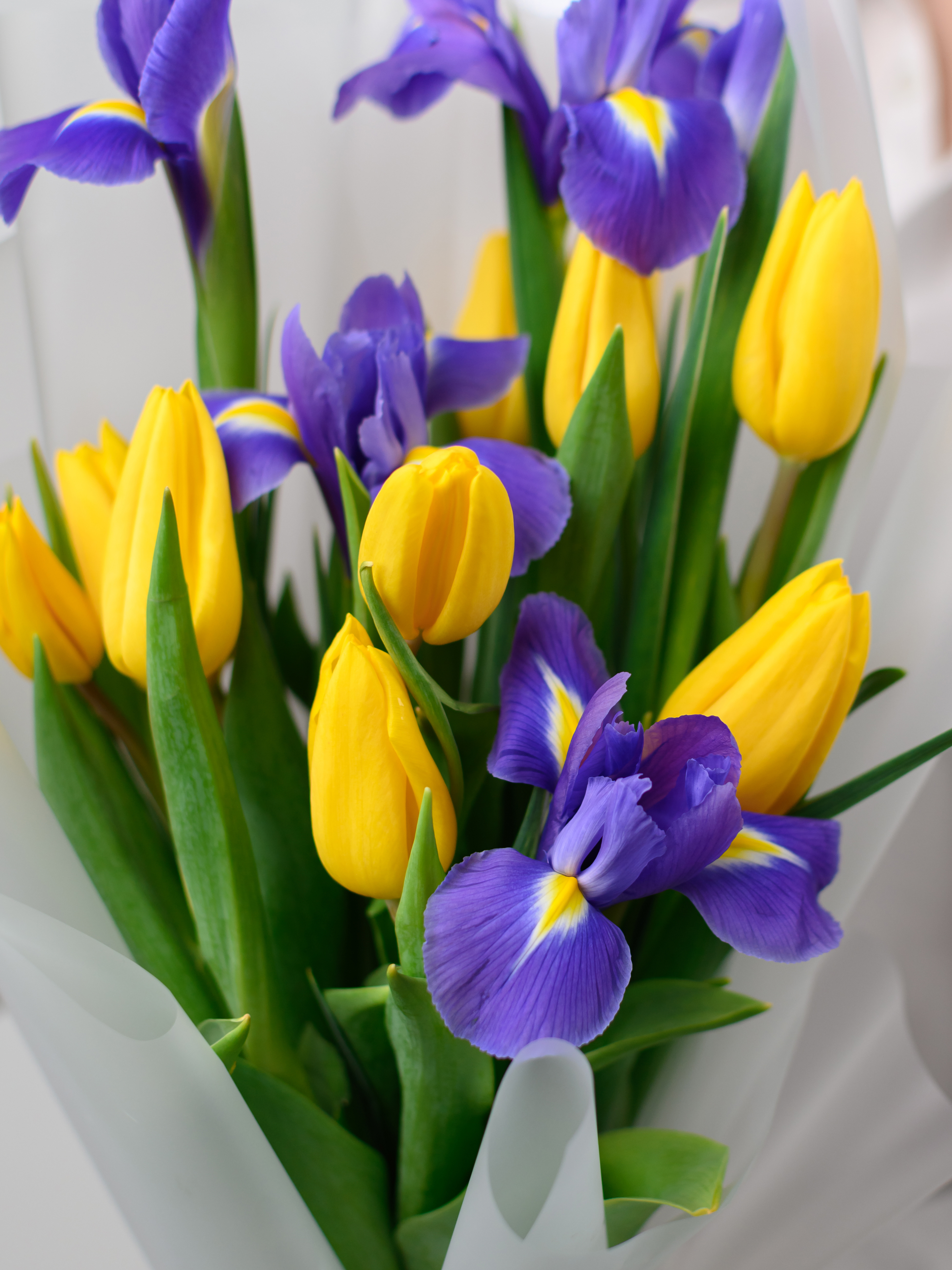 Дуо букет Ирисы и Тюльпаны