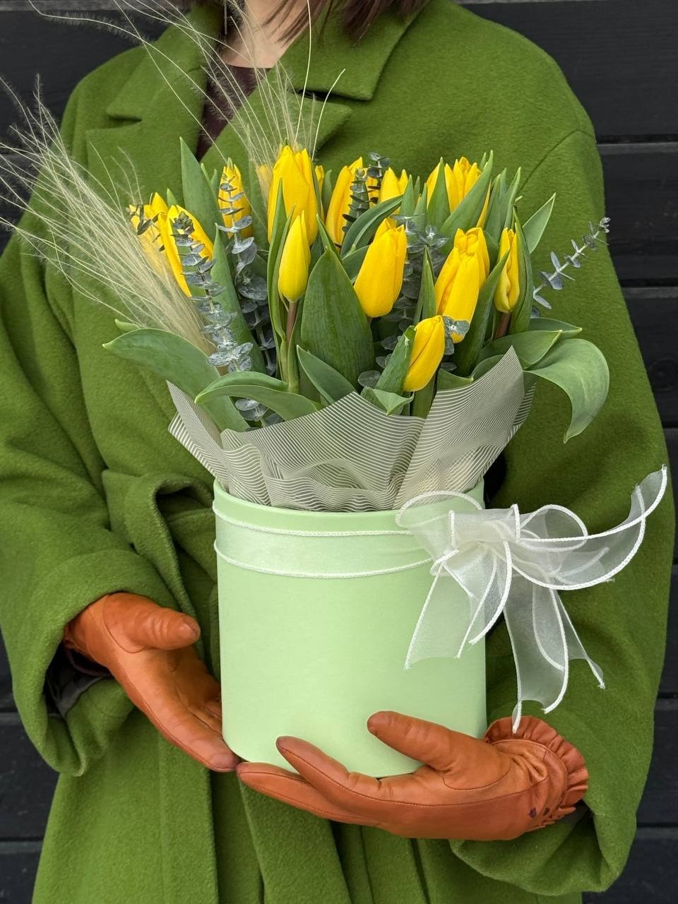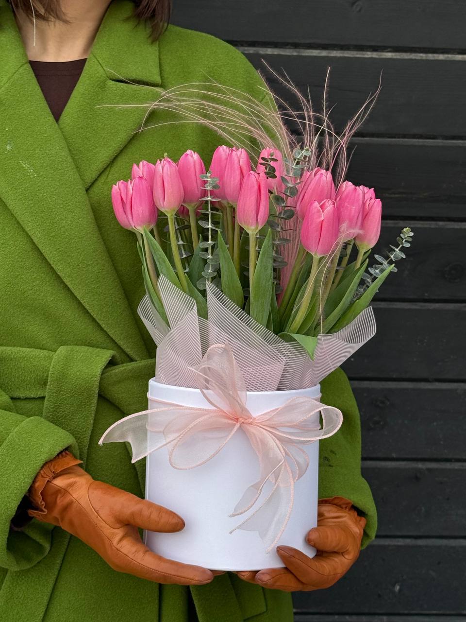 Прекрасный выбор для тех, кто ценит элегантность и свежесть! Наша композиция из тюльпанов в стильной шляпной коробке станет идеальным подарком к любому празднику. Выразительные цветы, окружённые аккуратной зеленью, создадут ощущение весны и радости. Это не просто букет — это настоящее произведение искусства, которое подчеркнёт вашу оригинальность и вкус. Подарите своим близким незабываемые эмоции вместе с нашей цветочной композицией!