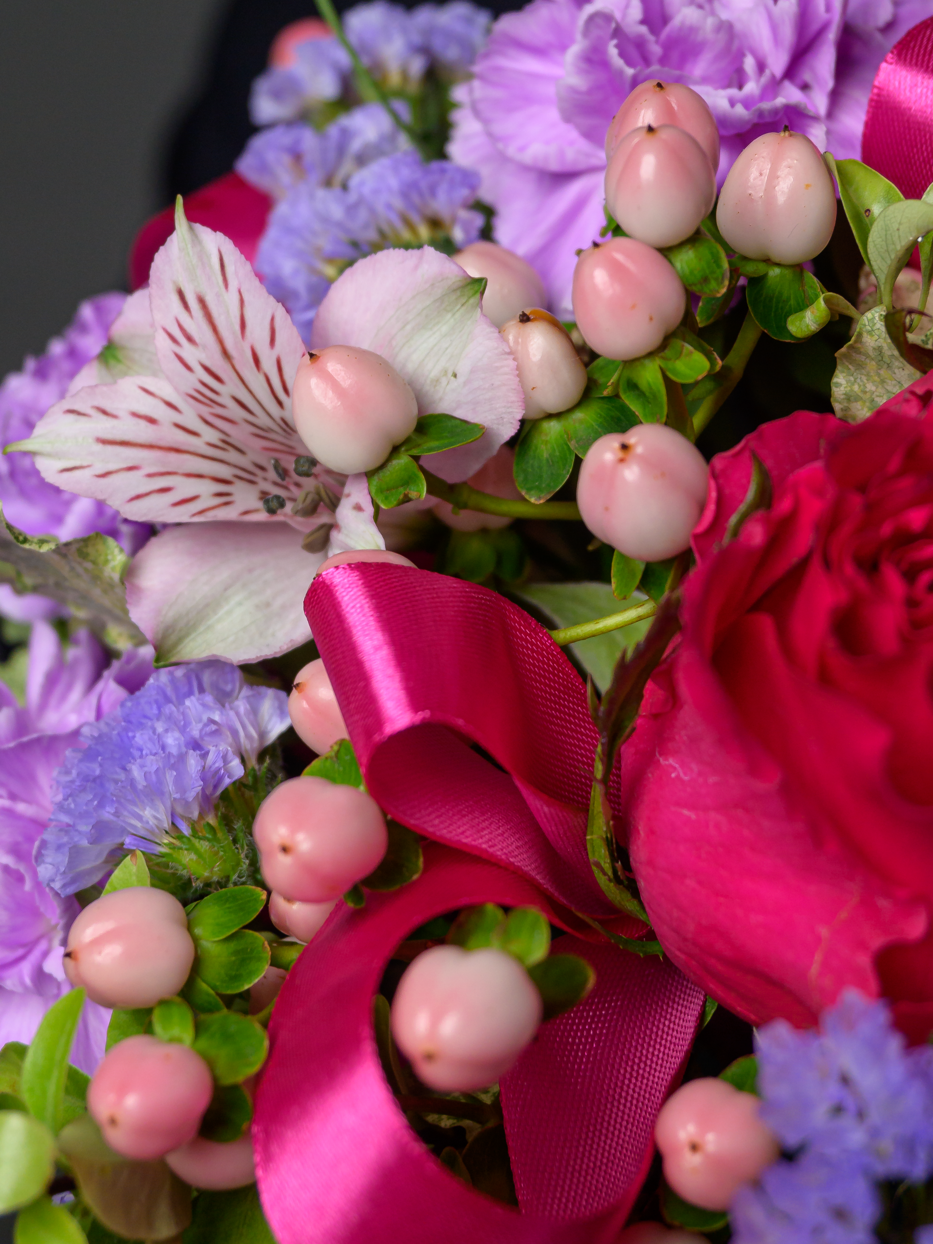 "Королева дня" – букет красоты и элегантности! Для особого случая выбирайте лучшее: алые розы и нежные герберы, утонченные альстромерии и гиперикумы, дополненные статуэтной статицей. Доставка вашего послания любви и восхищения станет безупречной благодаря продуманной упаковке и качеству состава. Пусть ваш день будет королевски прекрасным!
