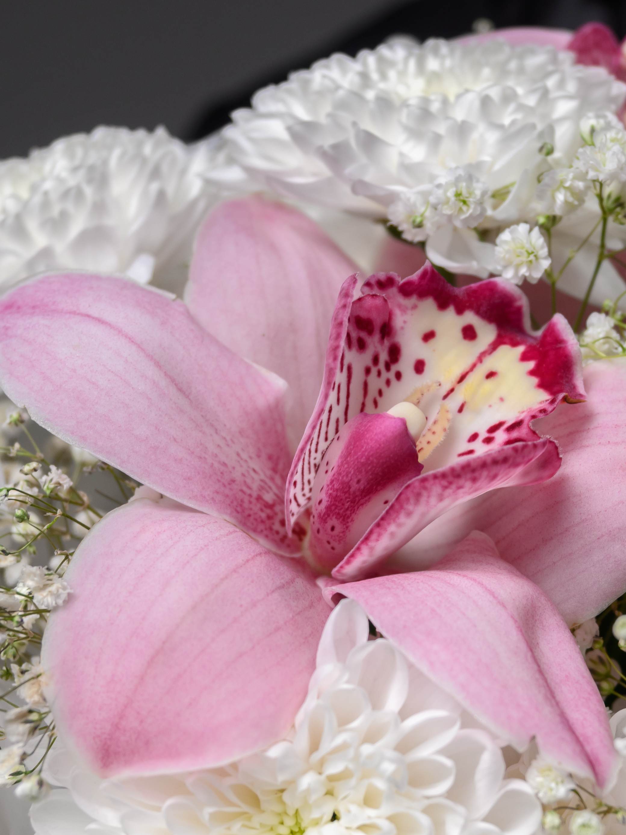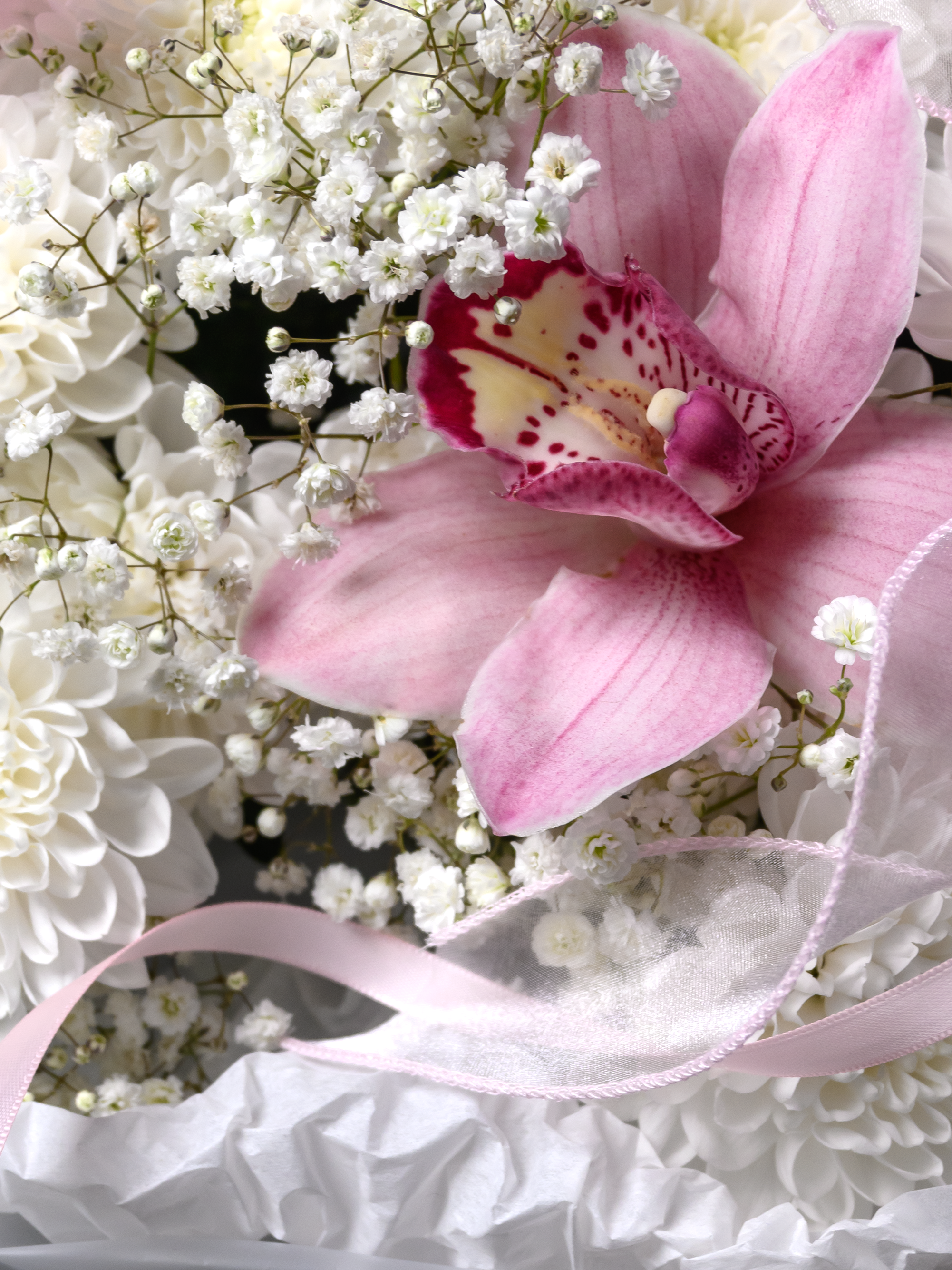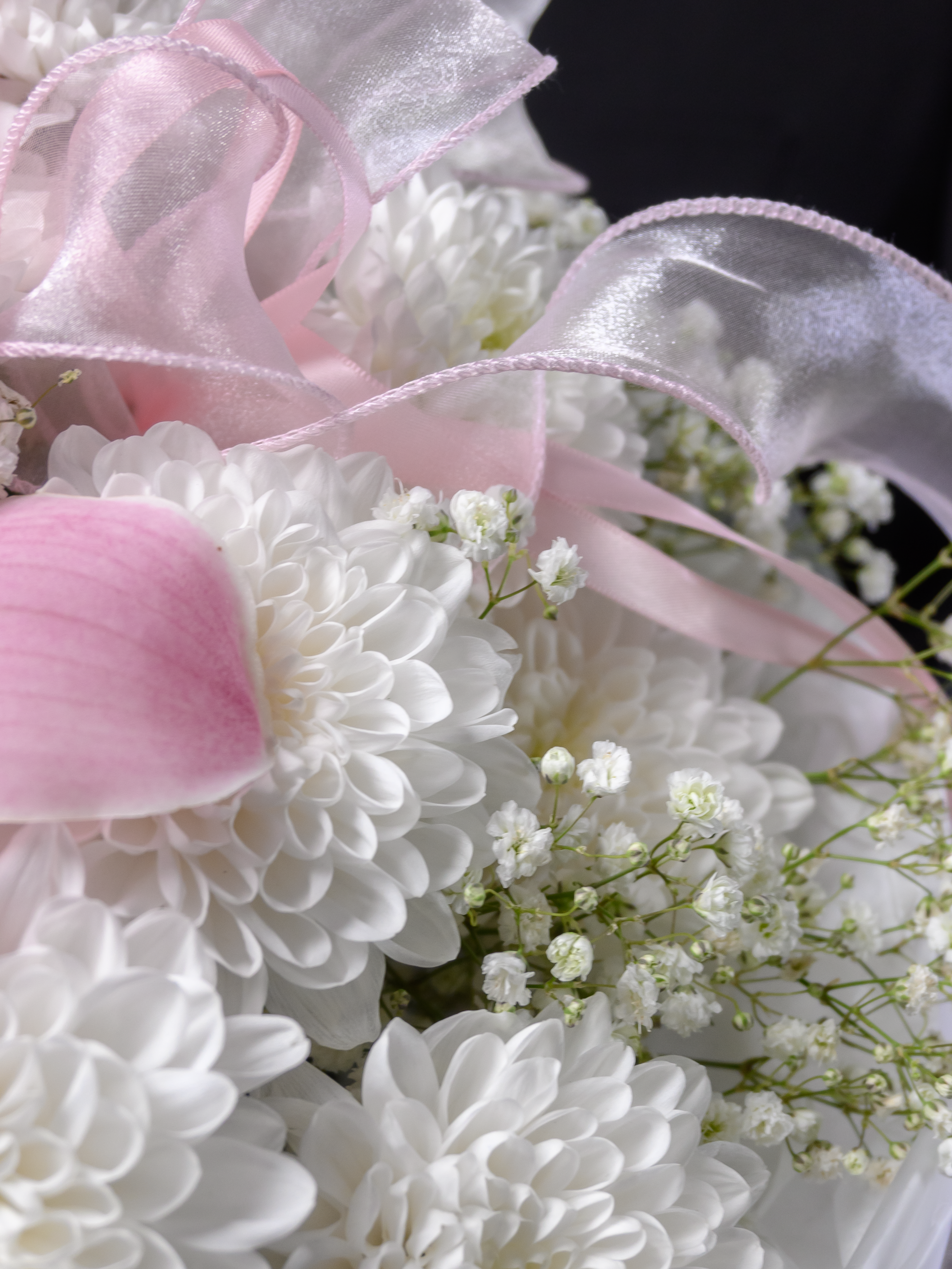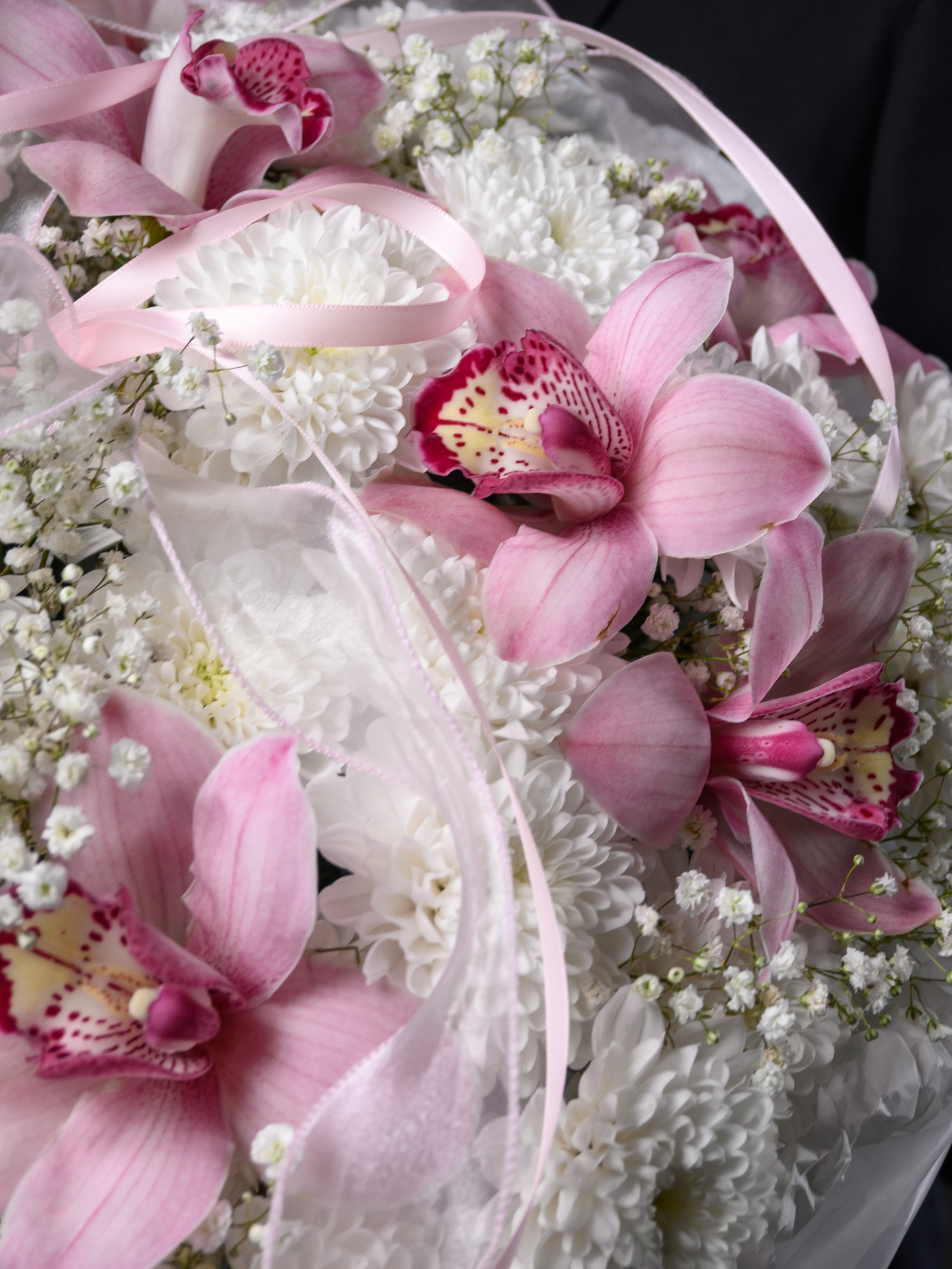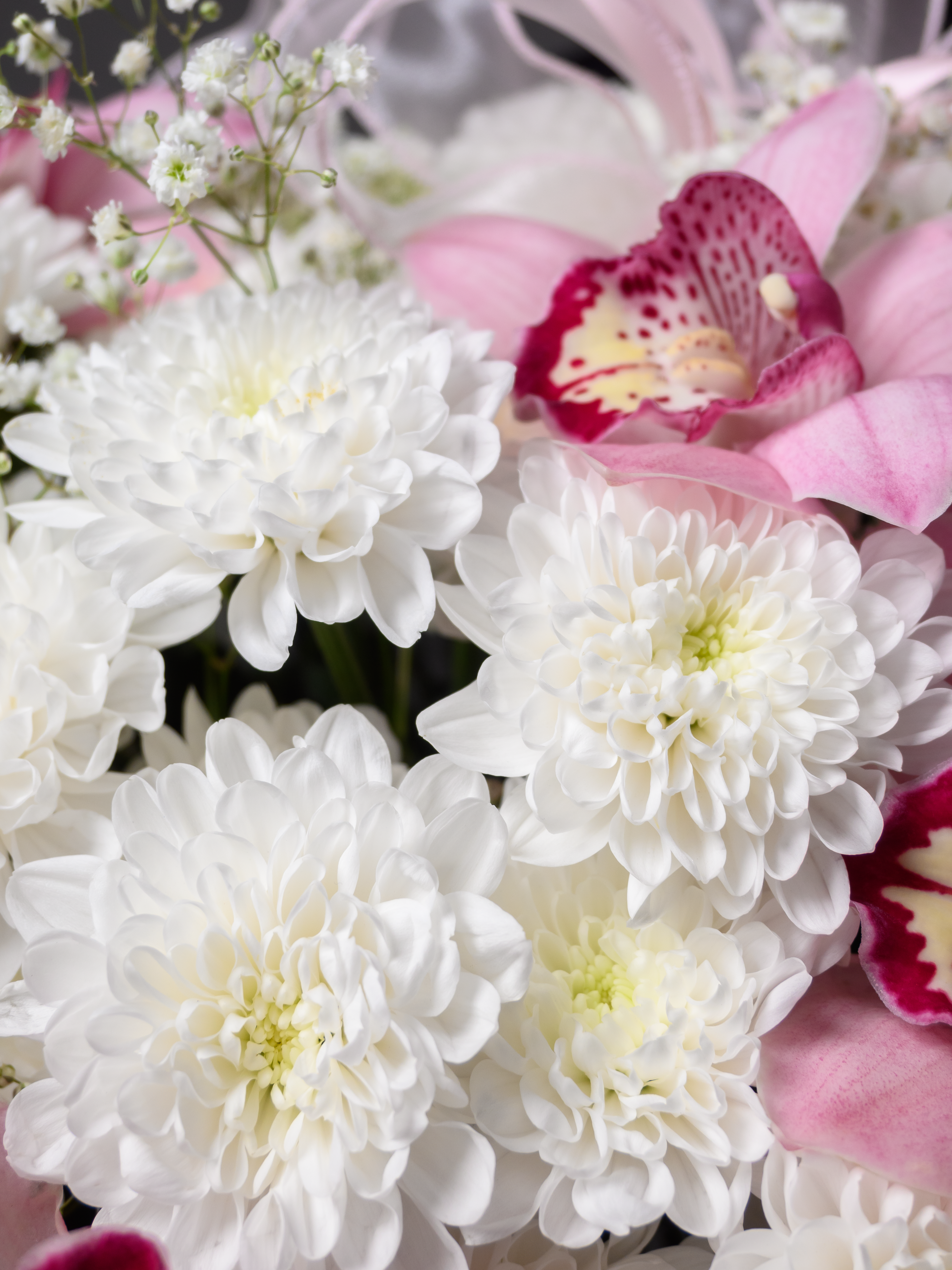 «Королева сердца» — роскошный букет, созданный выразить самые теплые чувства! Атласные ленты подчеркивают изысканность композиции, а пластиковые ленты обеспечивают долговечность хризантемам и гипсофиле. Гигантская хризантема и пышная кустовая белая хризантема придают букету особую элегантность. Три размера (М – 30-35см; L – 40–45см; XL – 50–55см) позволяют выбрать идеальный вариант для вашего случая.