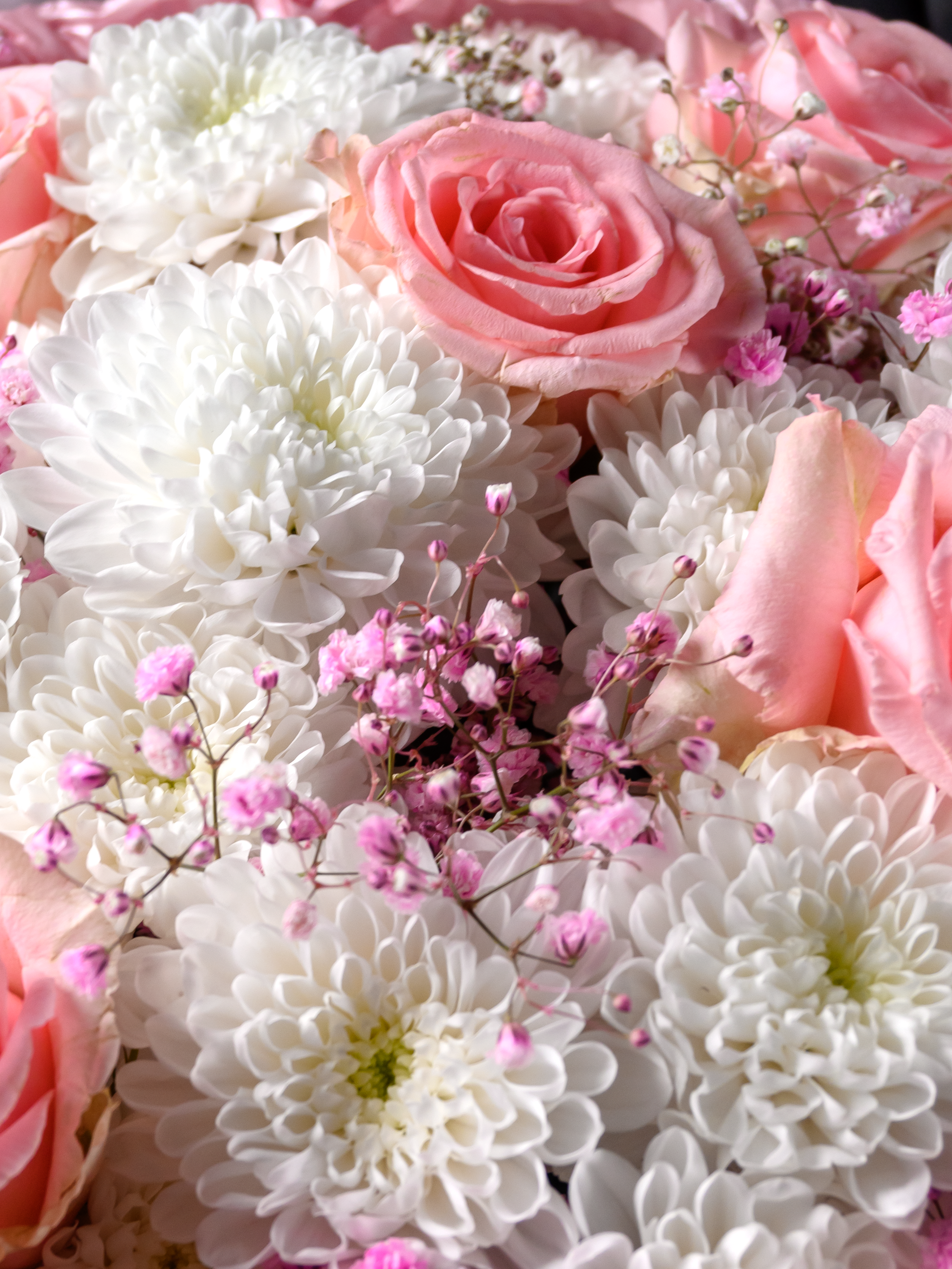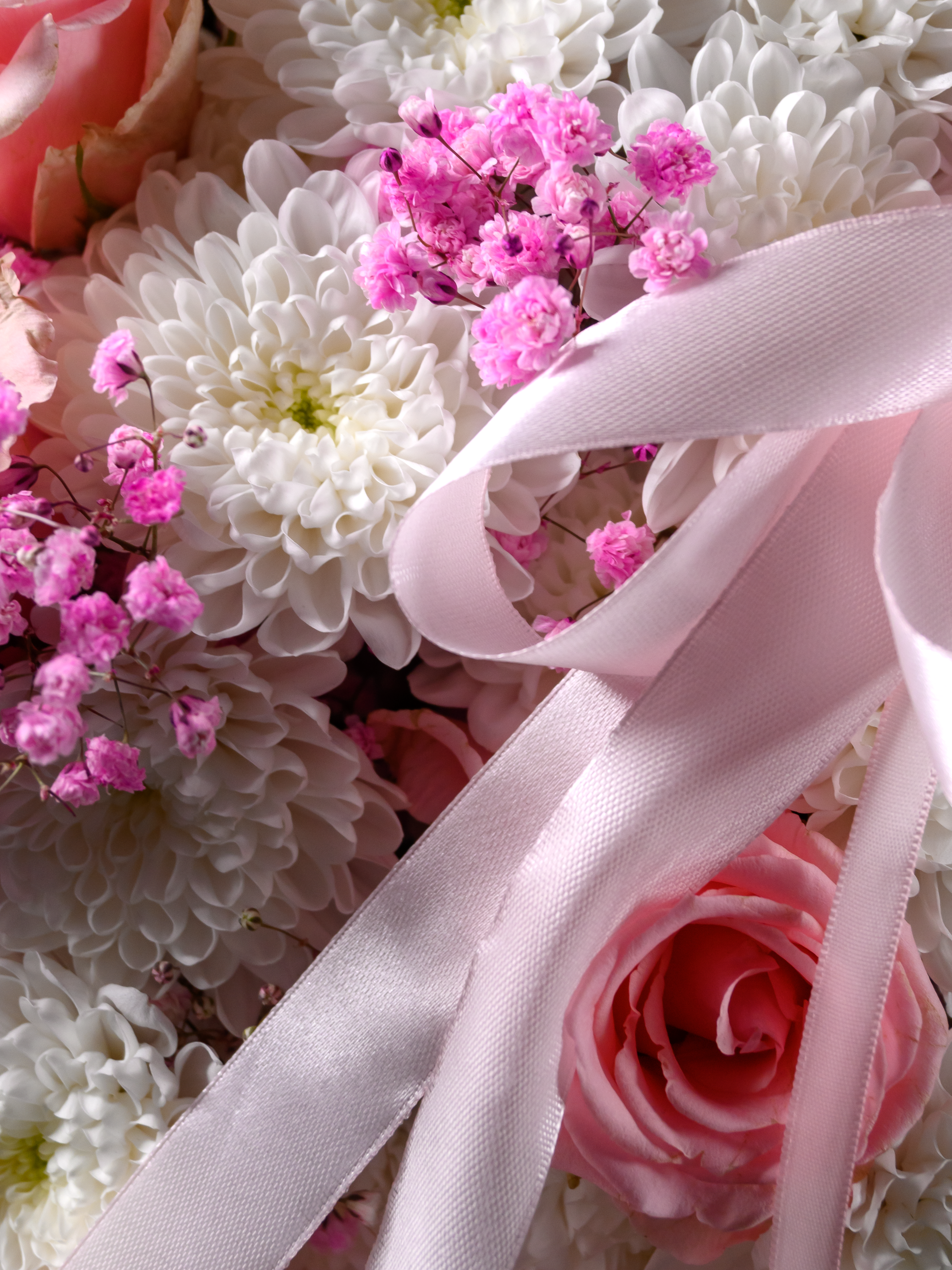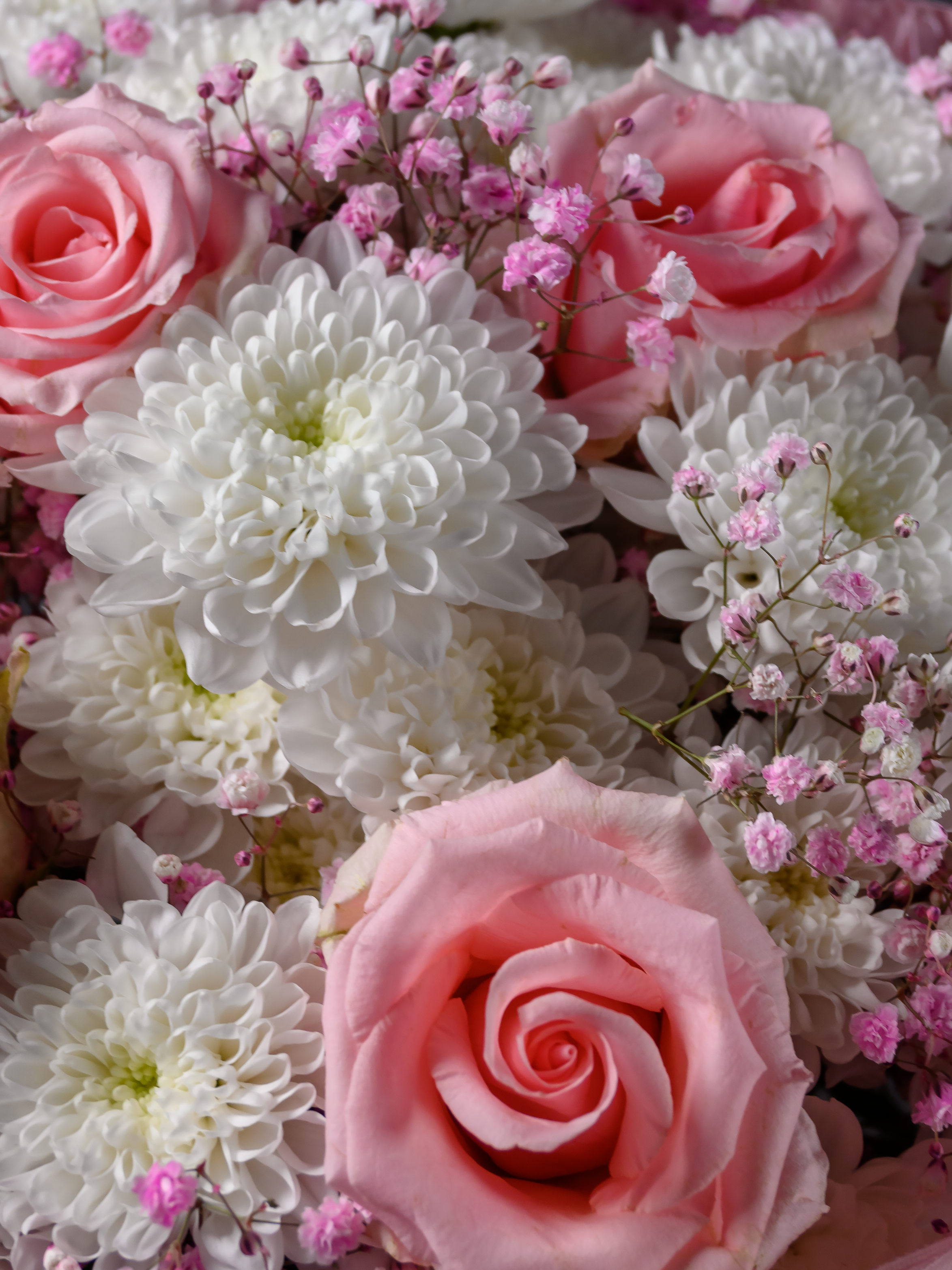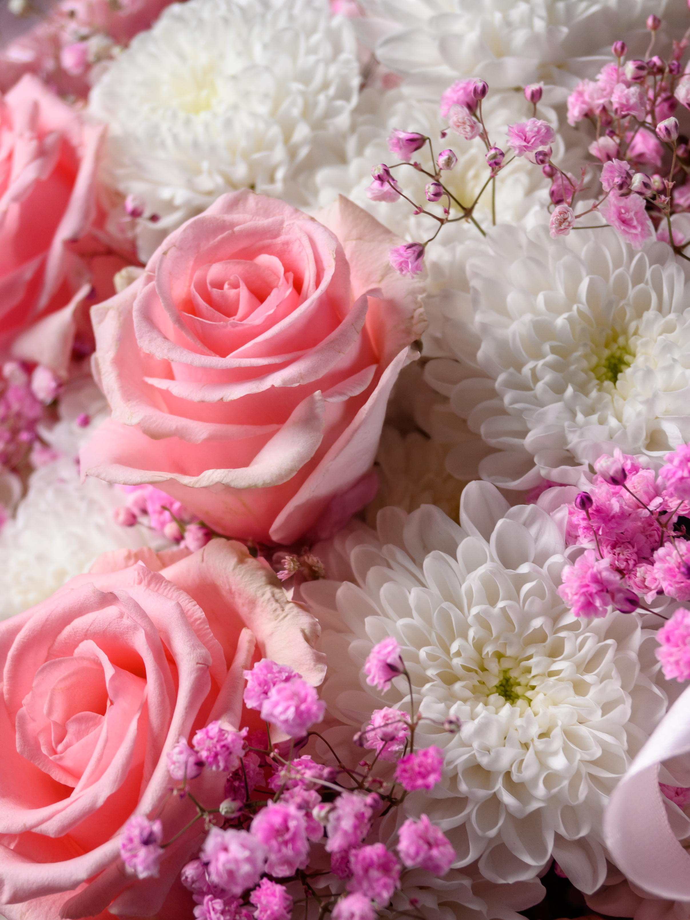 Букет "Нежные мечты" станет идеальным выражением ваших чувств! Розы нежно-розового цвета подчеркивают изысканность композиции, а сочетание белой хризантемы и гипсофилы создает нежную цветовую гамму.