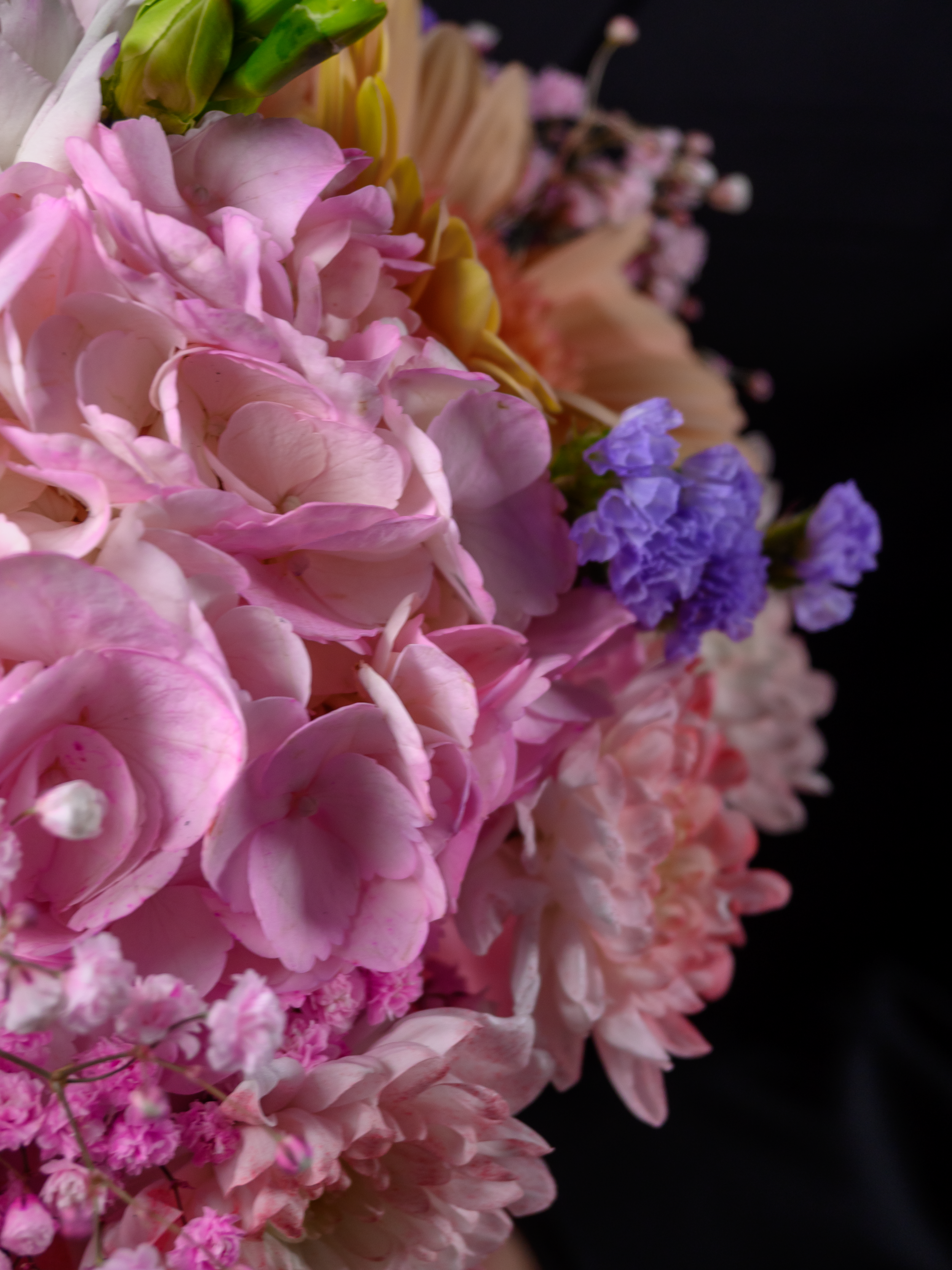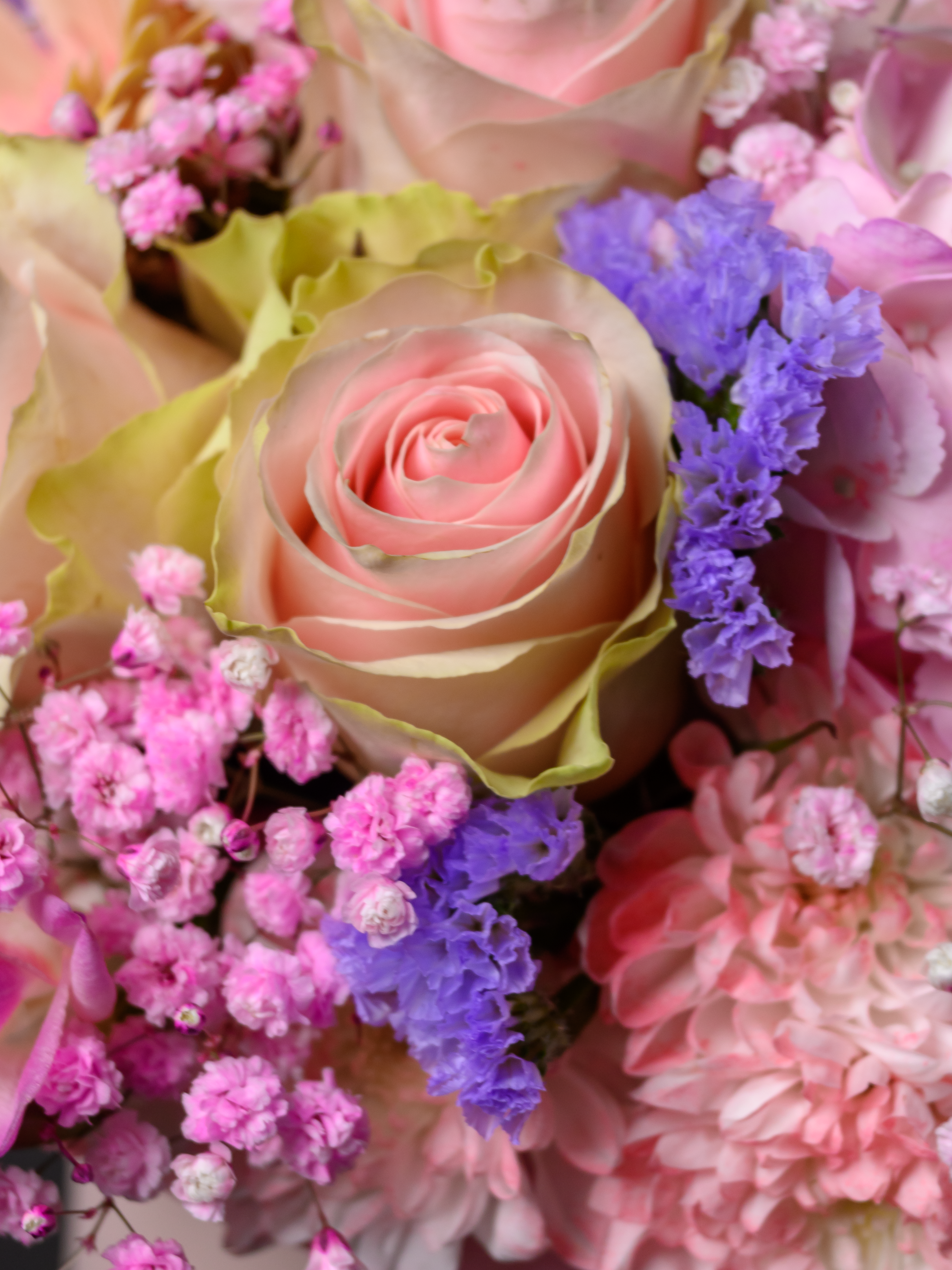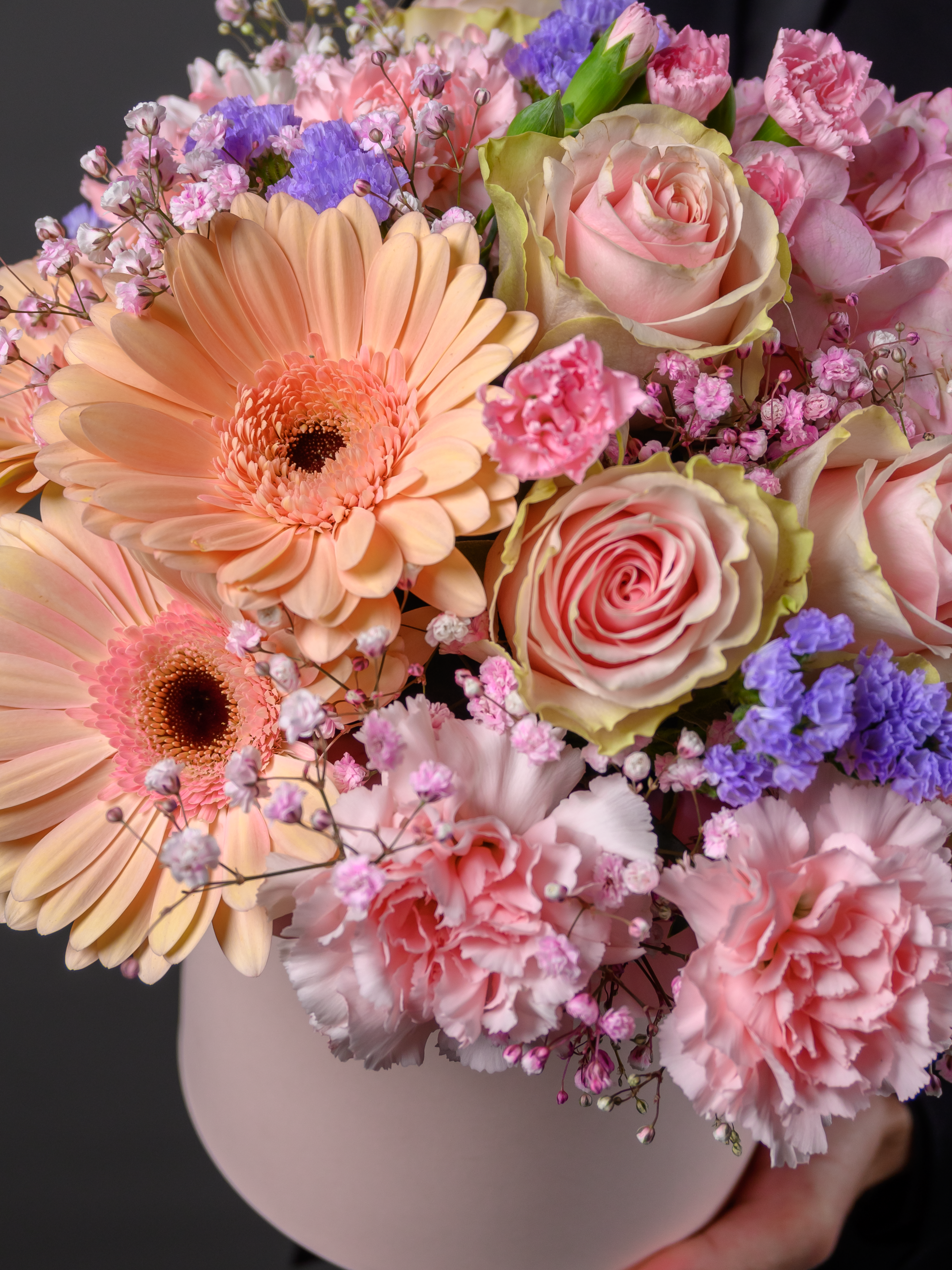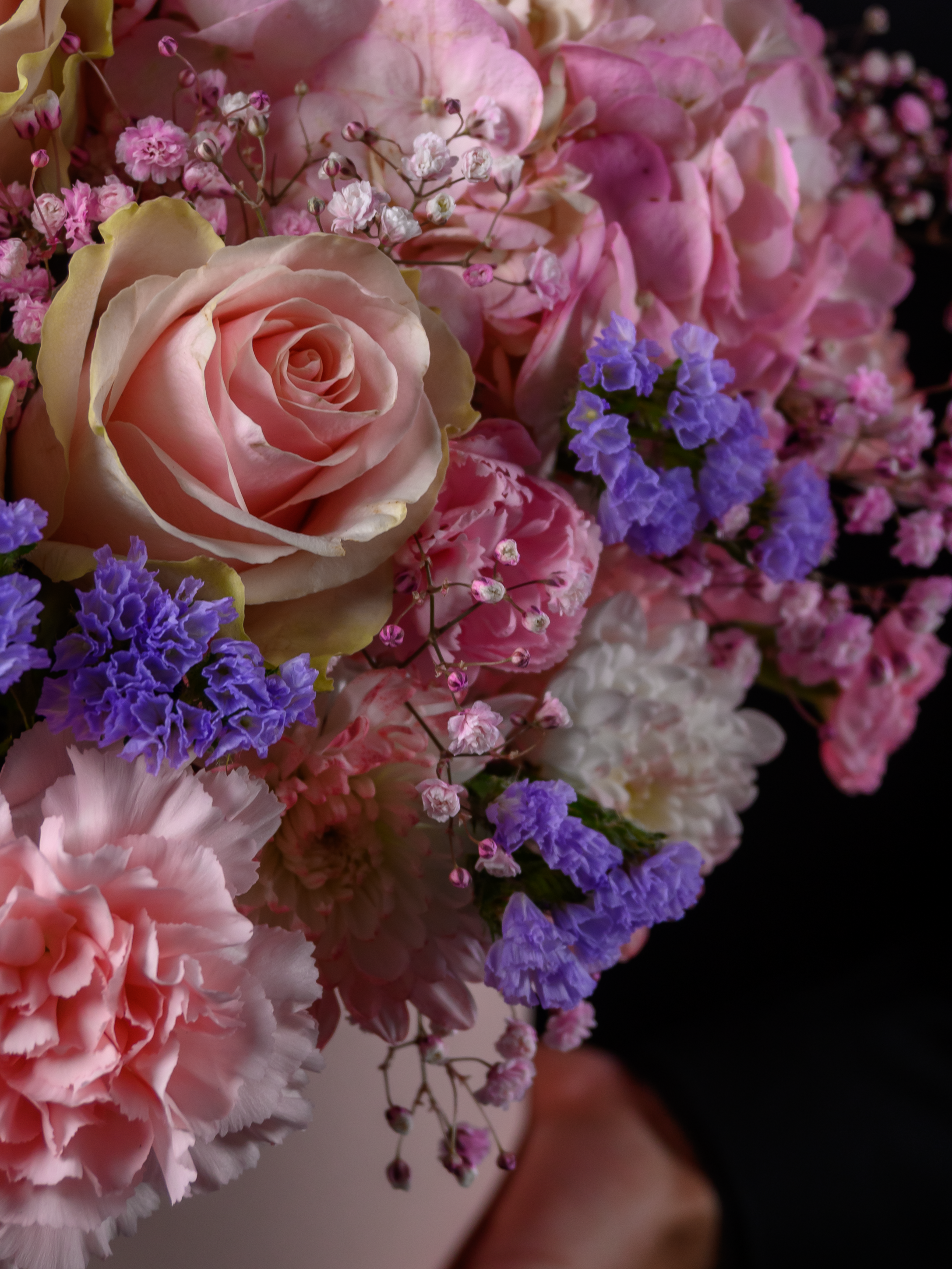 "Предчувствие" — это роскошный букет из гортензии, гвоздики, статицы, хризантемы, герберы, гипсофилы и фрезии, дополненный красочным оформлением. Ваша благодарность, любовь либо поздравление засверкает новыми красками! Объемные размеры (M-20–25см, L-25–30см, XL-30–35см) подчеркнут важность вашего внимания. Создайте незабываемые эмоции близким с нашим букетом!