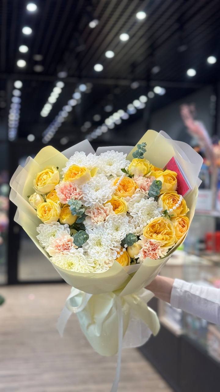 Сборный букет из кустовых роз и хризантем