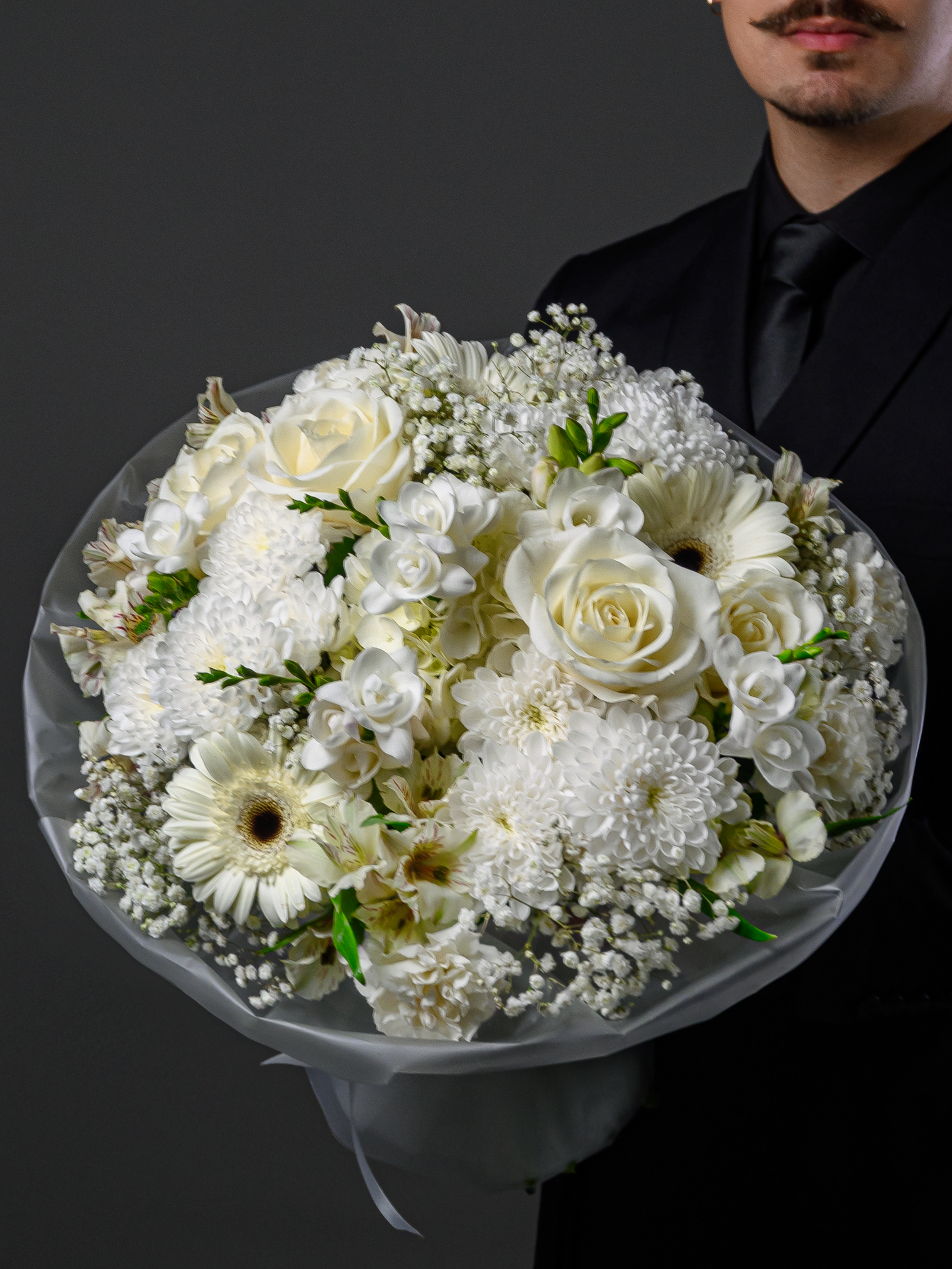 "Символ чистоты" – букет свежести и нежности! В нем розы, гортензии, альстромерии, гвоздики, герберы, хризантемы и фрезии создают гармоничное единство цветов. Ваш идеальный выбор выразить чувства чистоты, искренности и любви к близким. Запоминающийся презент по любому поводу!