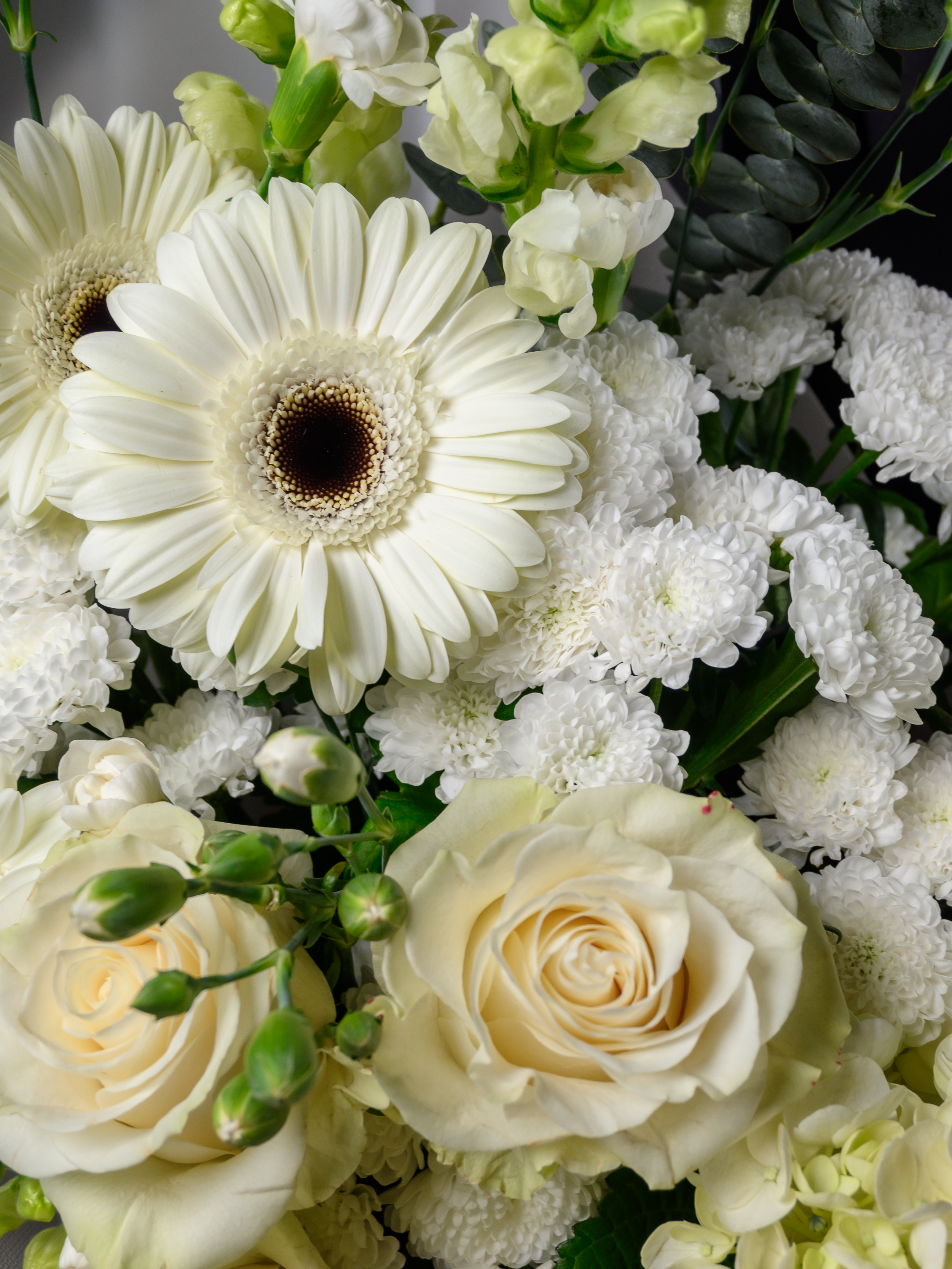 Букет «Спасибо, что ты есть» — искреннее признание ваших чувств! Яркие герберы, элегантные розы, гортензии и эвкалипт создают гармоничное сочетание цветов и форм. Эксклюзивный дизайн подчеркнёт индивидуальность подарка. Три варианта размера (М – 30-35 см, L – 40-45 см, XL – 50-55 см) позволяют выбрать идеальный букет по особому случаю.