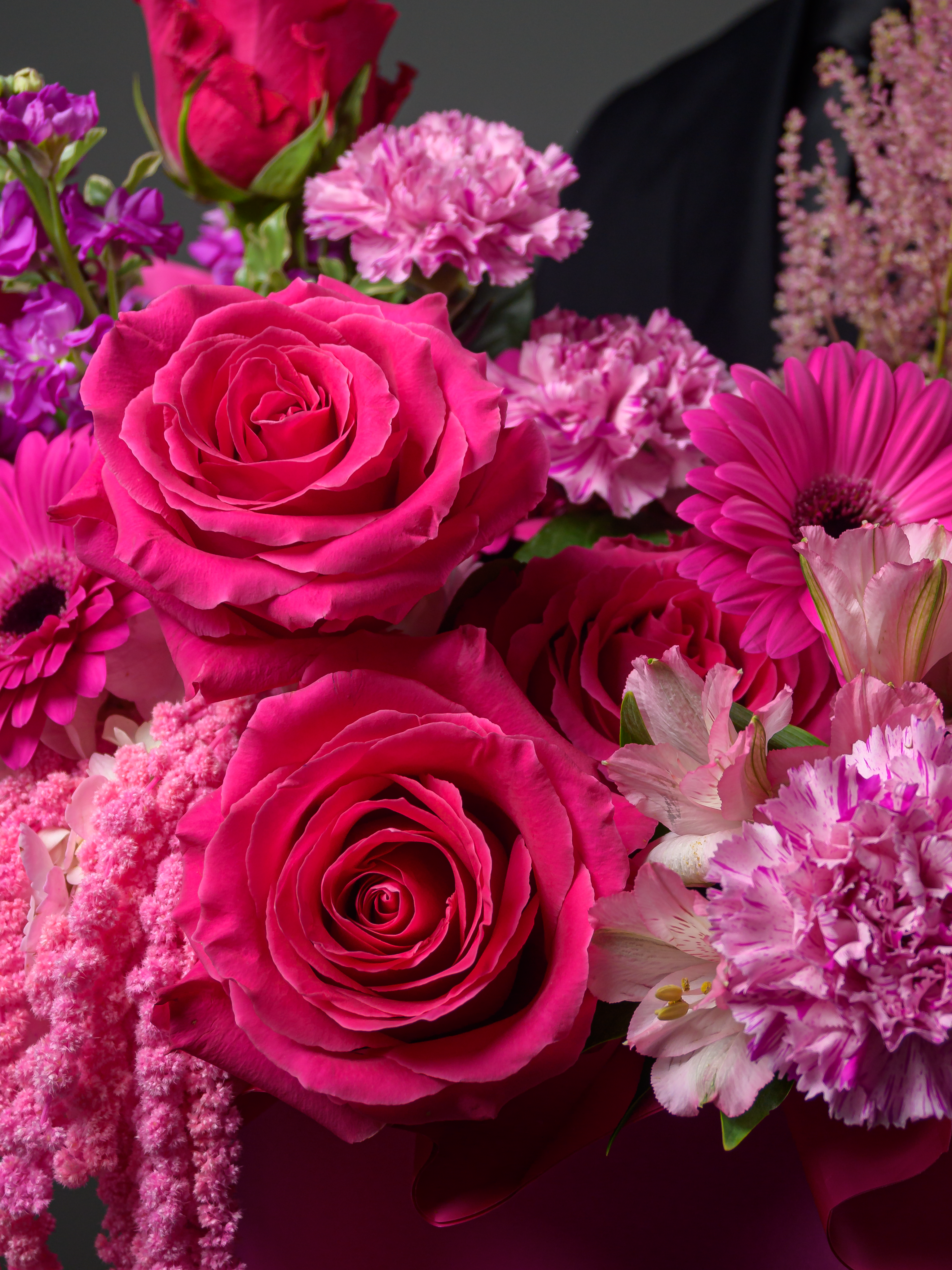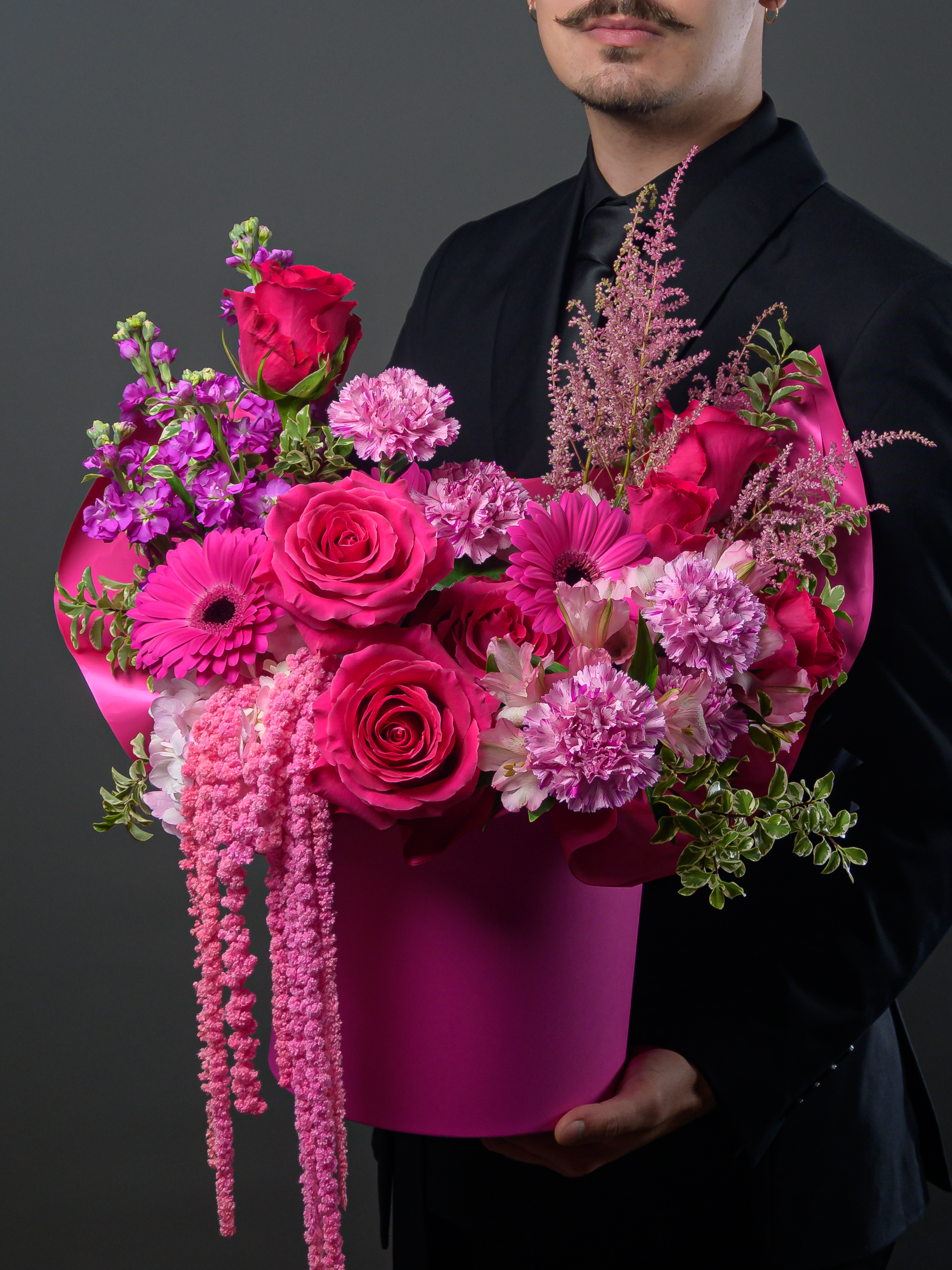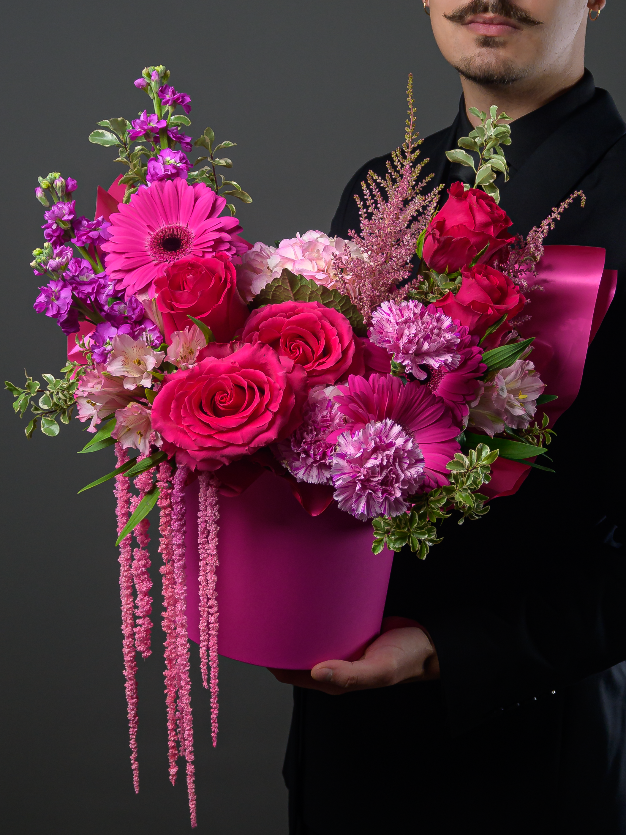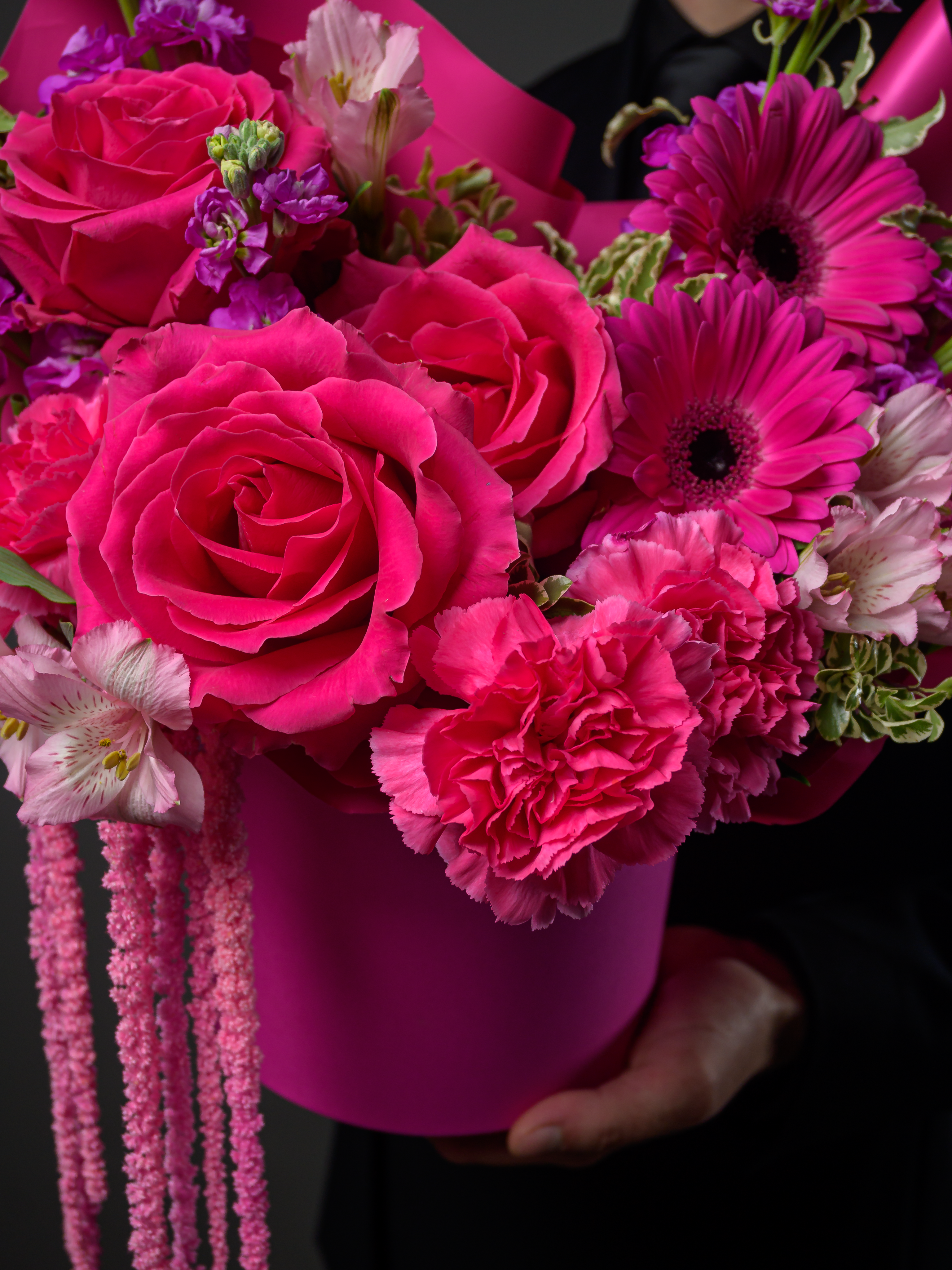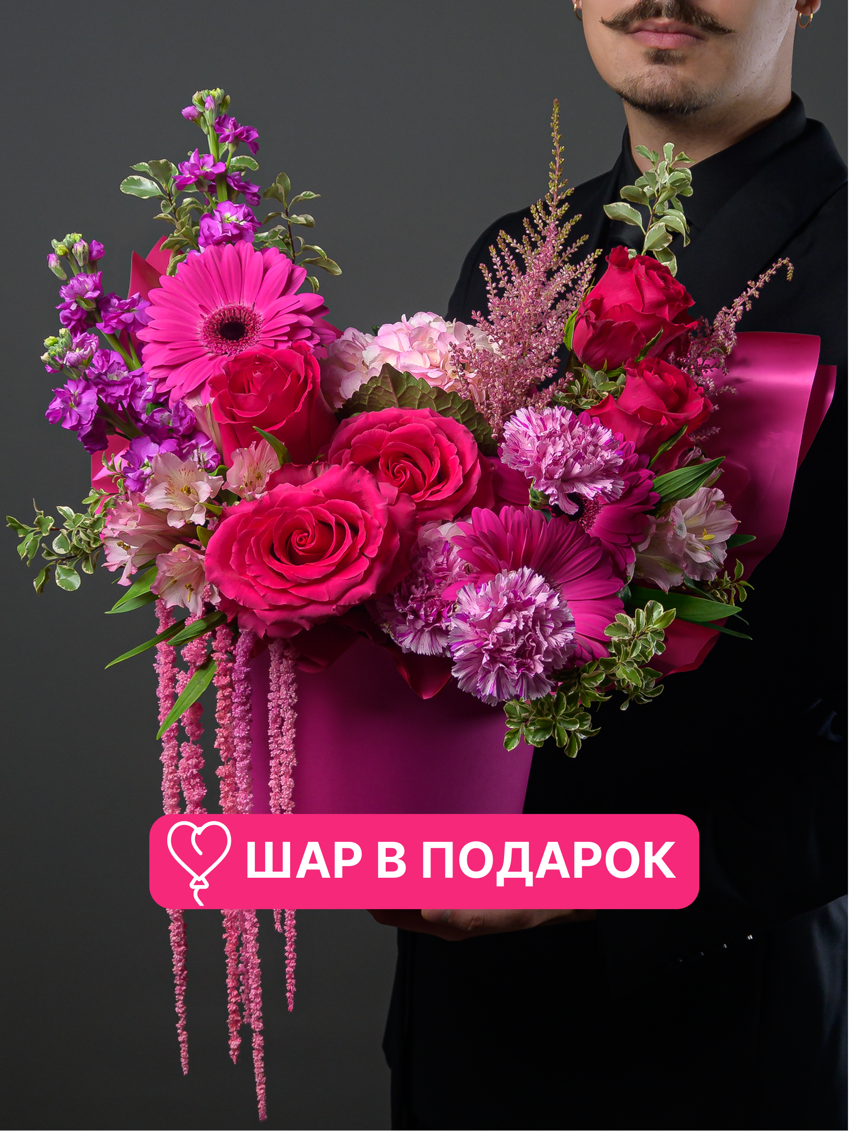 Композиция «Яркие чувства» — идеальный подарок для самых близких! Содержит яркие цветы альстромерии, герберы, гвоздику и розы, дополненные сухоцветом амарантуса. Долго сохраняет свежесть. Купите букет и порадуйте любимого человека красотой, теплом и вашей заботой!