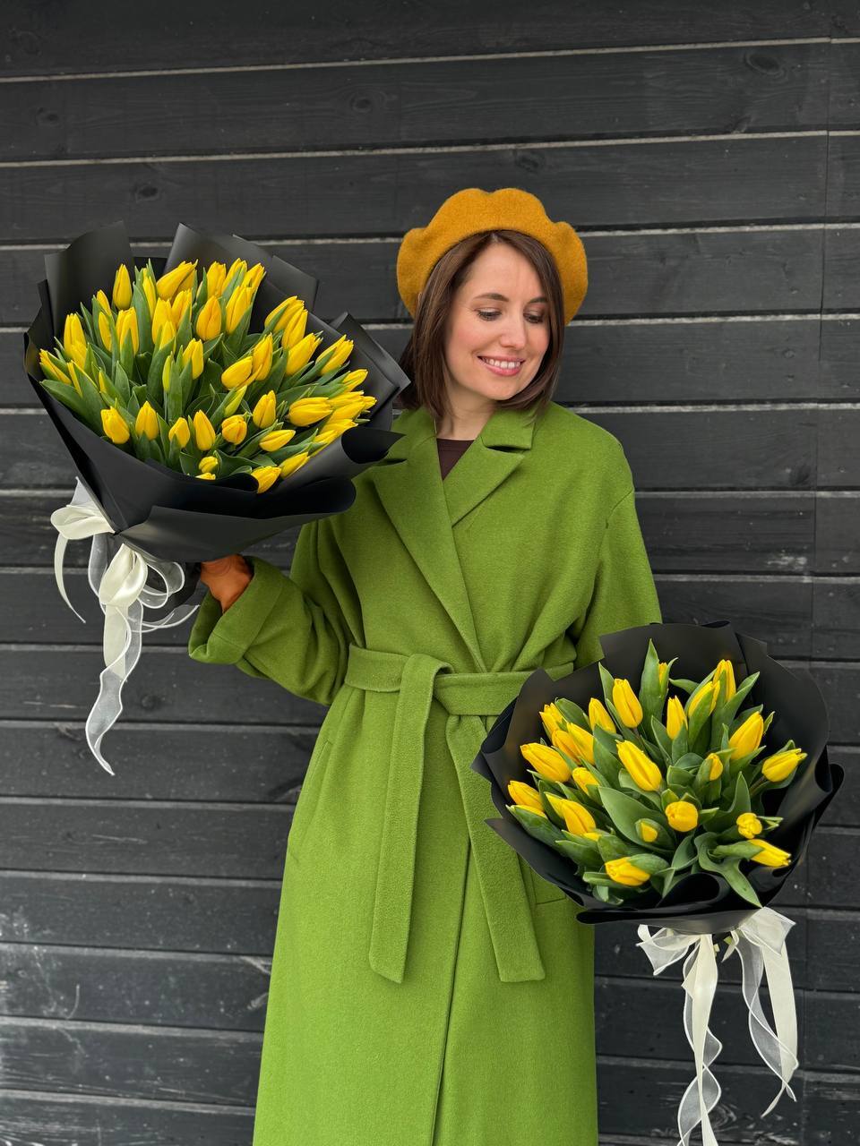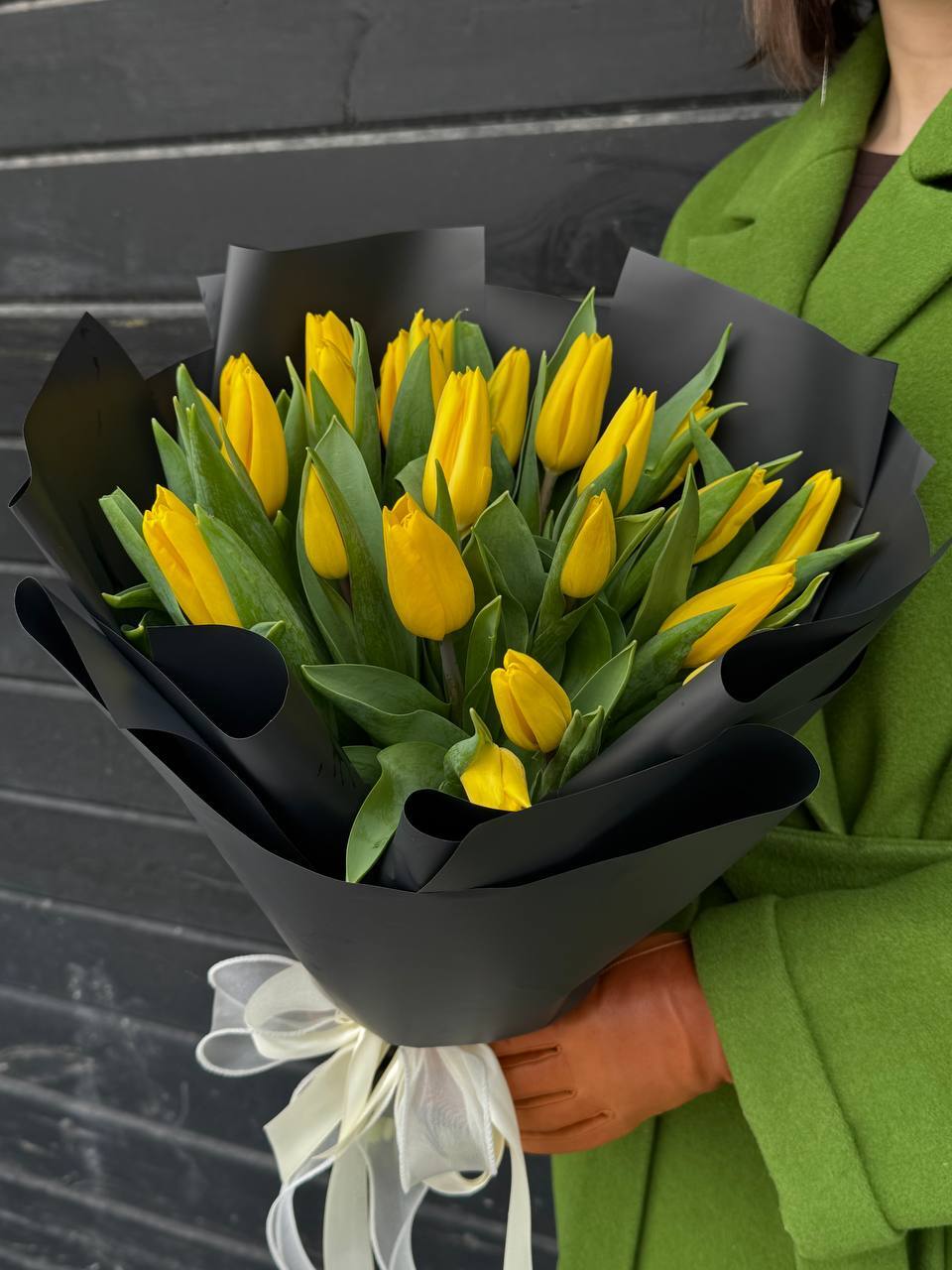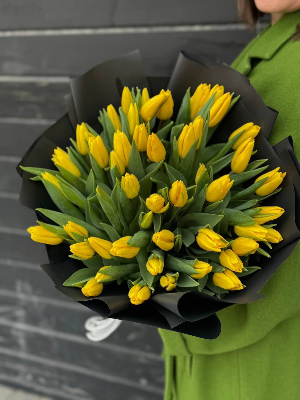 Желтые тюльпаны в черной упаковке - это стильно! Они станут идеальным подарком к любому празднику, а также украсят любой интерьер. Это хит продаж среди цветов благодаря своей оригинальности и универсальности. Не упустите шанс порадовать себя или своих близких этим замечательным букетом!
